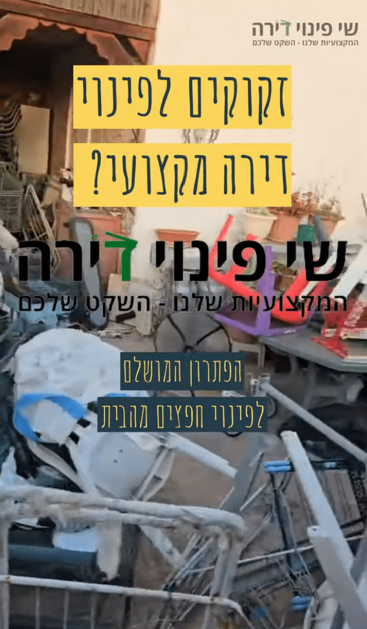| מעבר דירה או מכירה | לפני כניסה לדירה חדשה, או כאשר מוכרים דירה קיימת, יש צורך לפנות אותה מכל הציוד והרהיטים שאינם רצויים או שאינם עוברים למקום החדש. |