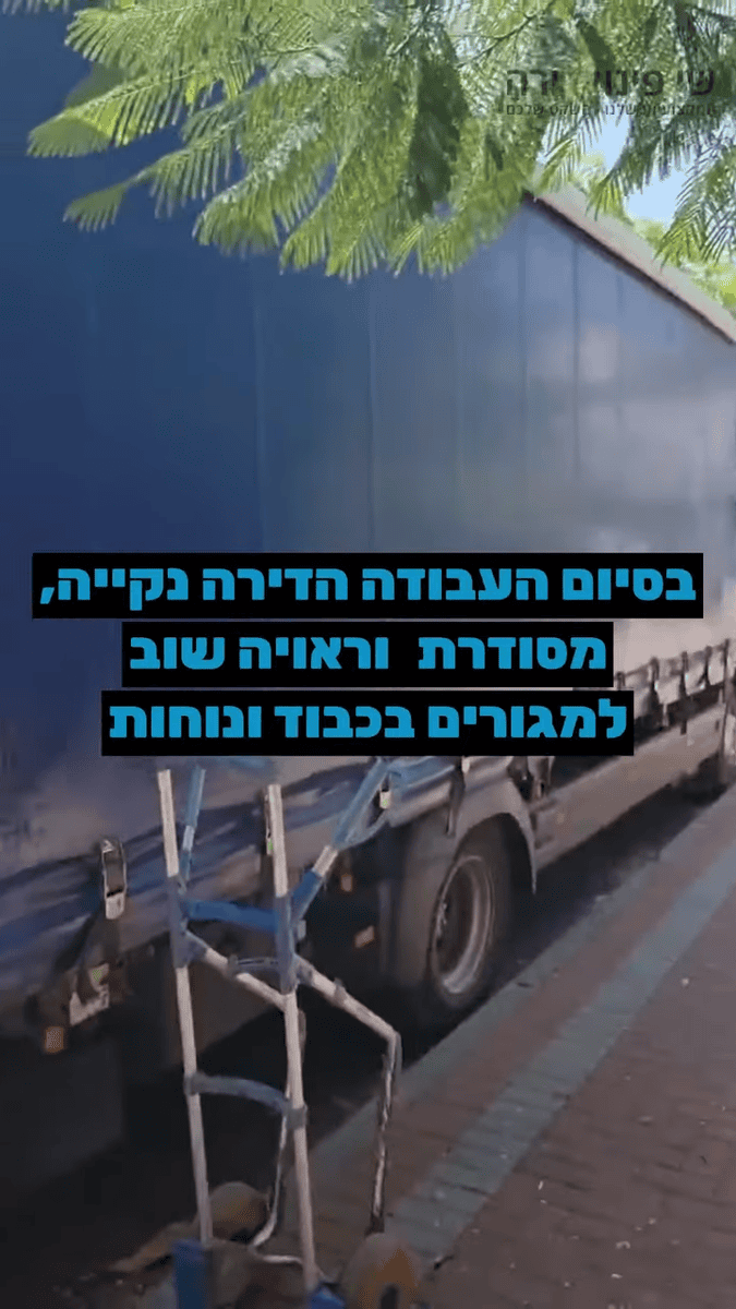 | לפני שיפוץ | לפני תחילת שיפוץ גדול, יש צורך לפנות רהיטים וציוד מהדירה כדי לאפשר גישה נוחה לקבלנים ולעבודה. |