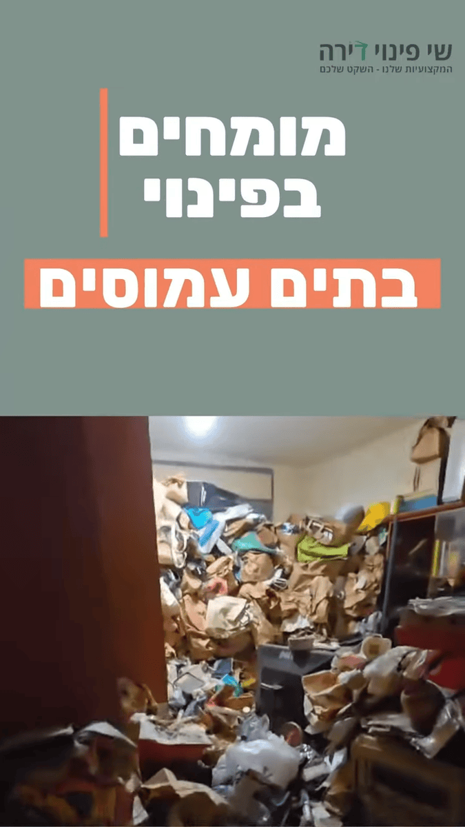 | הזנחה ואגרנות כפייתית | דירות שנותרו מוזנחות לאורך זמן, כמו במקרים של אגרנות כפייתית או בית מוזנח, דורשות פינוי יסודי של כמויות גדולות של פסולת וחפצים. |