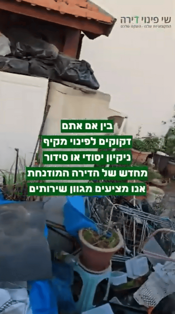 | דירת הורים מוזנחת | כאשר דירת ההורים נזנחה עקב מחלה, גיל מתקדם או נסיבות אחרות, נדרש פינוי מקצועי ורגיש. |